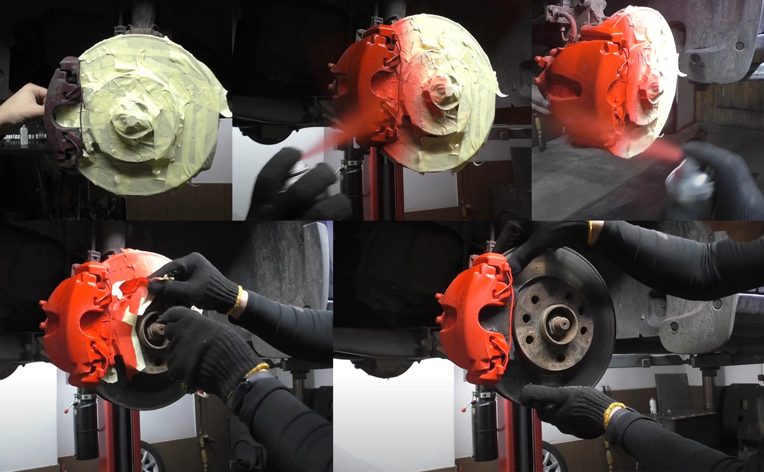 - Захист сусідніх ділянок. Варто обгорнути гальмівний диск та інші елементи малярною стрічкою чи фольгою, щоб уникнути випадкових бризок фарби.