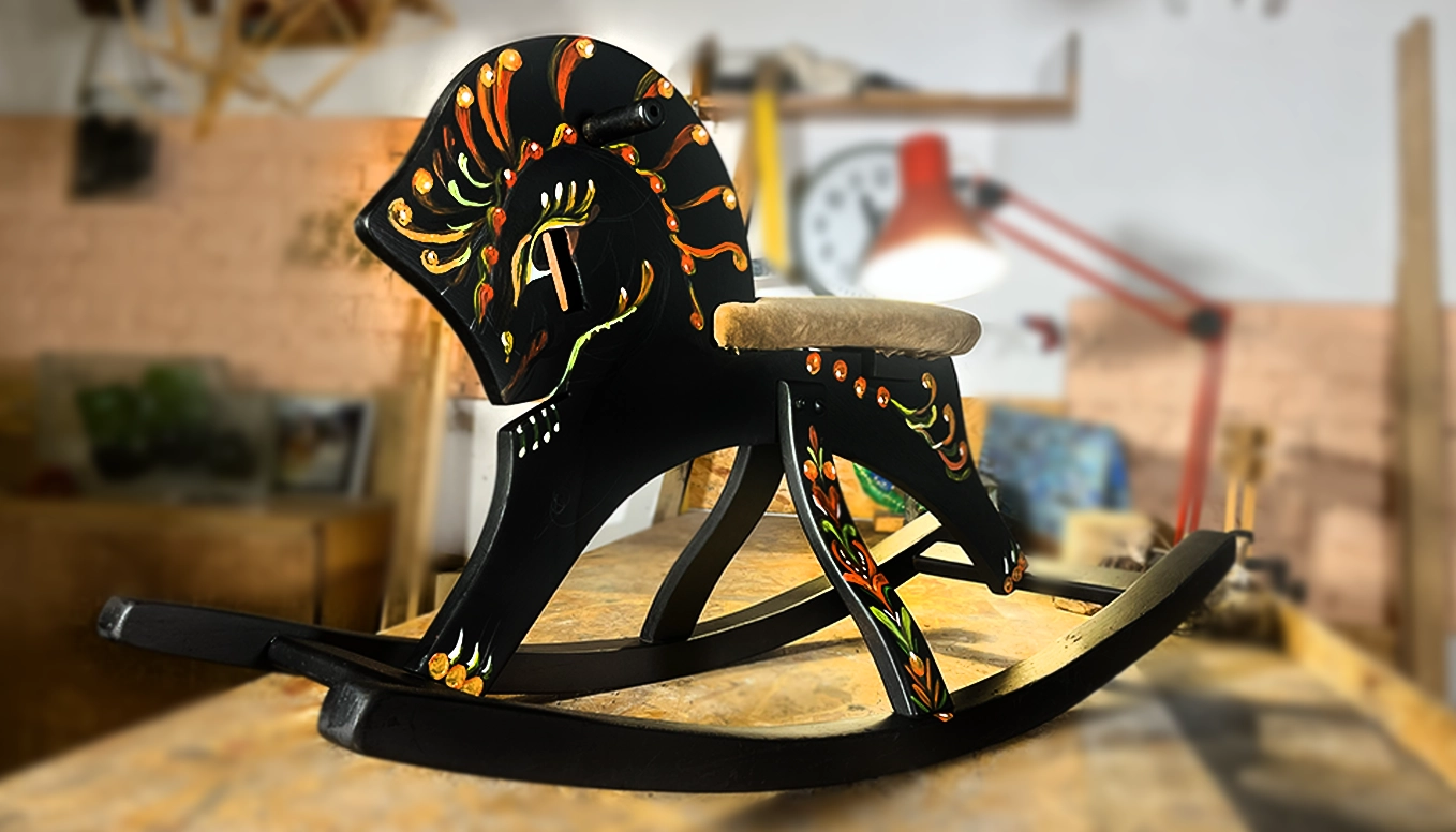 Чистий чорний — класика, стиль та елегантнiсть. А якщо додати яскраві акценти – для коника-гойдалки, наприклад, пофарбувати гриву, розмалювати сідло, прикрасити візерунками тло – чорний стає супер виразним та глибоким.