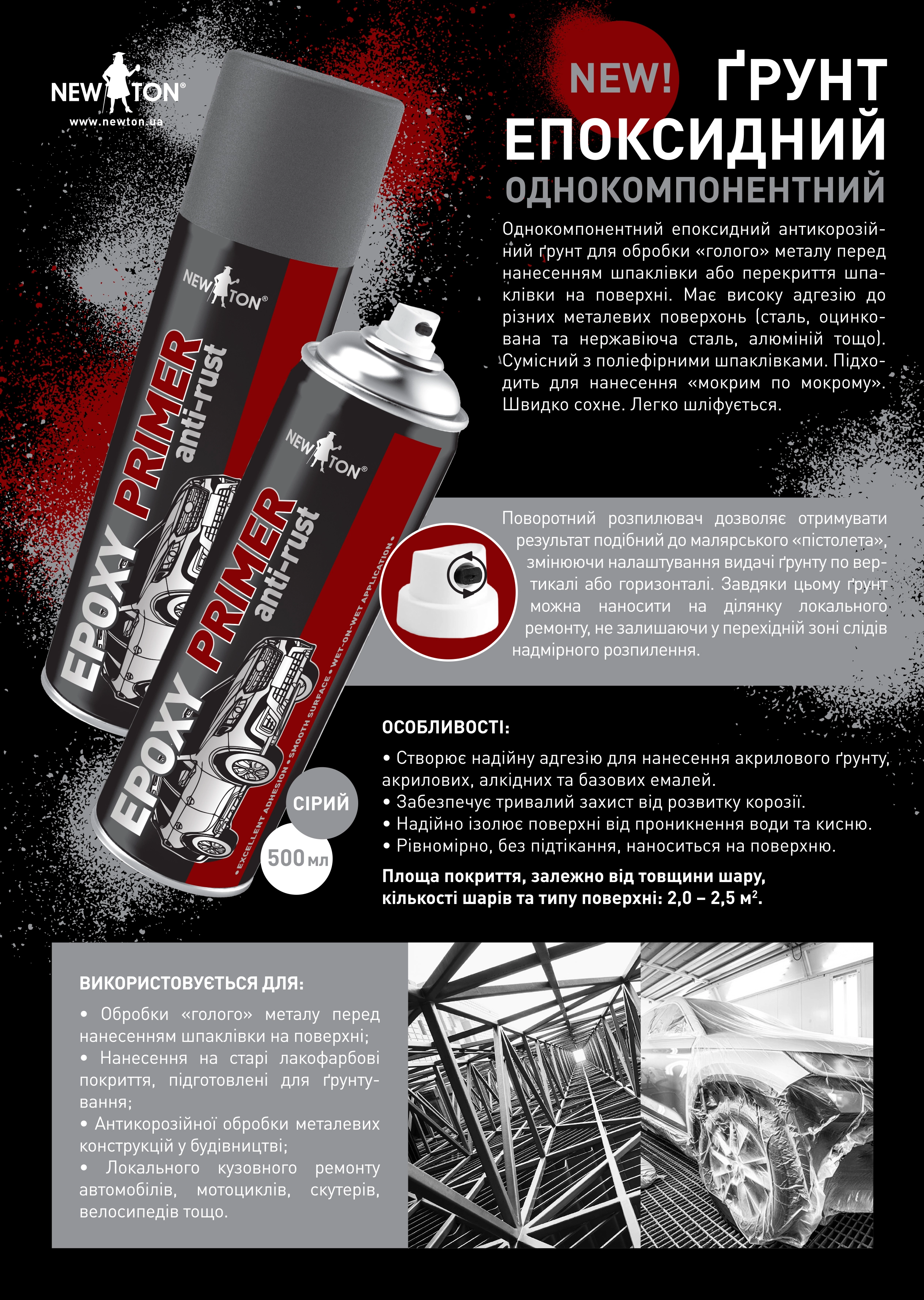 Новий грунт від NewTon — універсальний інструмент, що допоможе досягти бажаного результату фарбування як в руках майстра так і новачка. Процес обробки металевих поверхонь надзвичайно комфортний, ефективний та надійний.