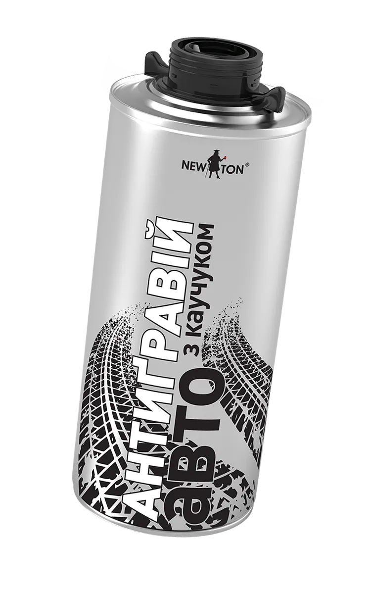 Антигравій New Ton — еластичне антикорозійне покриття на основі високополімерного каучуку й синтетичних смол. Надійний захист від ударів каміння, абразивного впливу бруду, піску, бензину, мастил, води й солі. Суттєво утривалює термін придатности кузова. Забезпечує зниження шуму в салоні автівки. Забарвлюють будь-якими видами лакофарбових матеріалів.